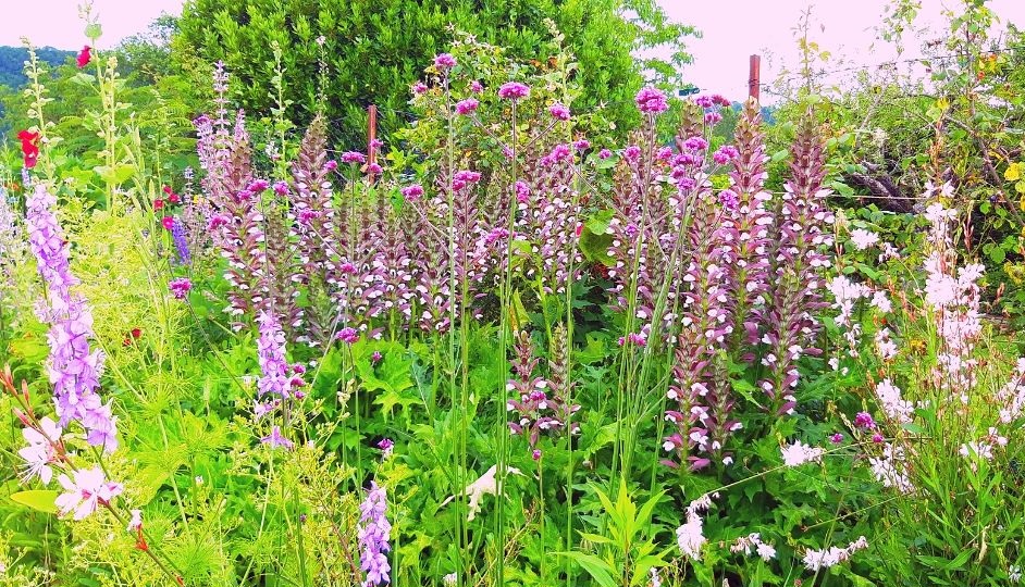 Een landelijke tuin waar het gazon overgaat in eindeloze weilanden vol koeien met wolken daarboven vraagt niet om coniferen !